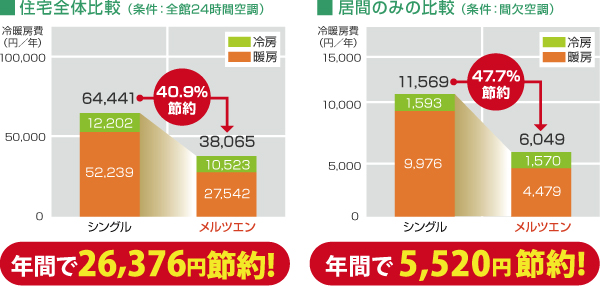 | 断熱性能 : 省エネ基準レベルにて比較 |