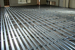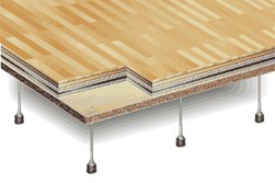 体育施設の床下地は一般の床下地と異なり特殊な鋼製床を使用します。弾力性を求めるだけでなく、近年高まっている緊急避難場所としての耐久性も重要さを増してきております。また、捨て貼りベニヤ、フローリングとの相性も重要です。